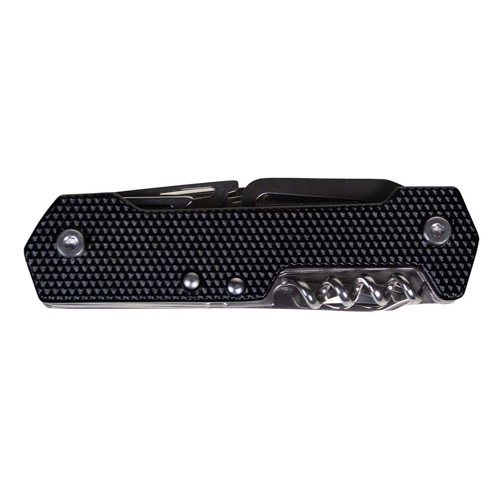 Multifunctional Schwarzwolf pocket knife. Includes 9 tools – knife, scissors, saw, corkscrew, bottle opener, can opener, flat screwdriver, phillips screwdriver