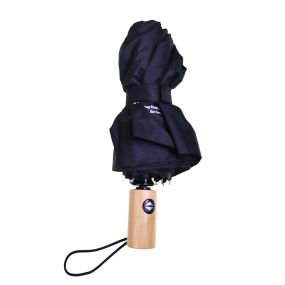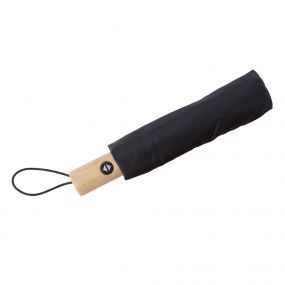 RPET foldable umbrella with eight panels, Velcro fastening, and bamboo handle. With automatic open and close button. Including sleeve.