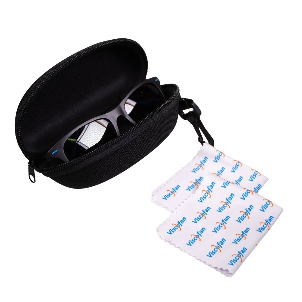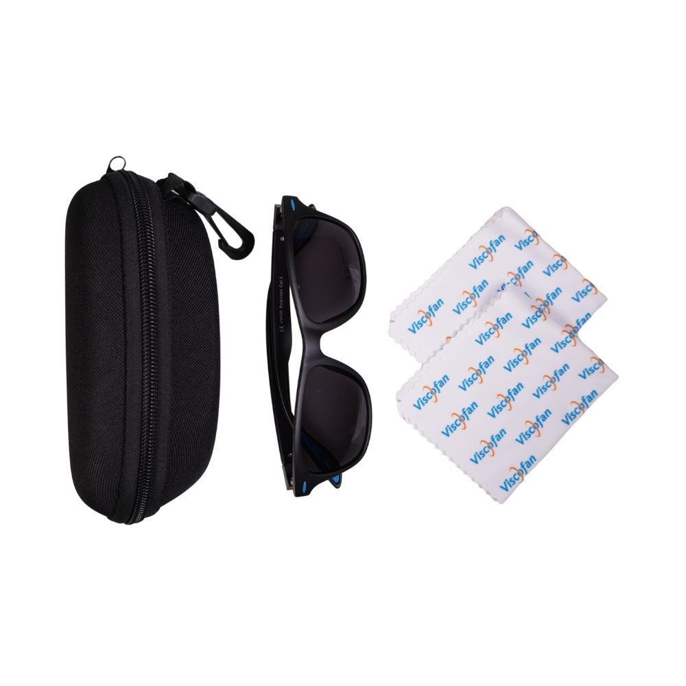 Polarized sunglasses Recycled polarized sunglasses, with rubber inserts and laser of logo on both sides, packed with set of 2 microfibre cleaning cloth in hard case box.