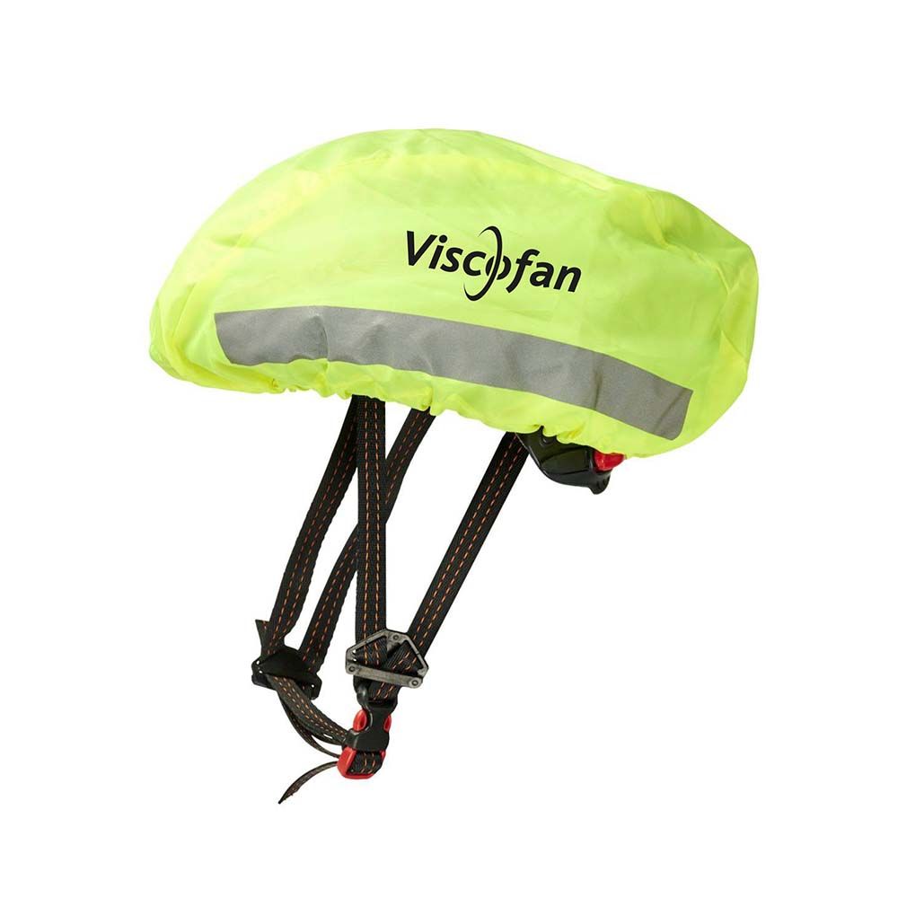 Reflective and waterproof helmet cover. Ideal helmet safety cover for cyclists that increases visibility. Made of high performance waterproof WP 600 lime fluorescent material with reflective film. Selected parameters are tested according to EN 13356:2001 Type 2. Polyester.