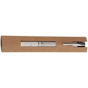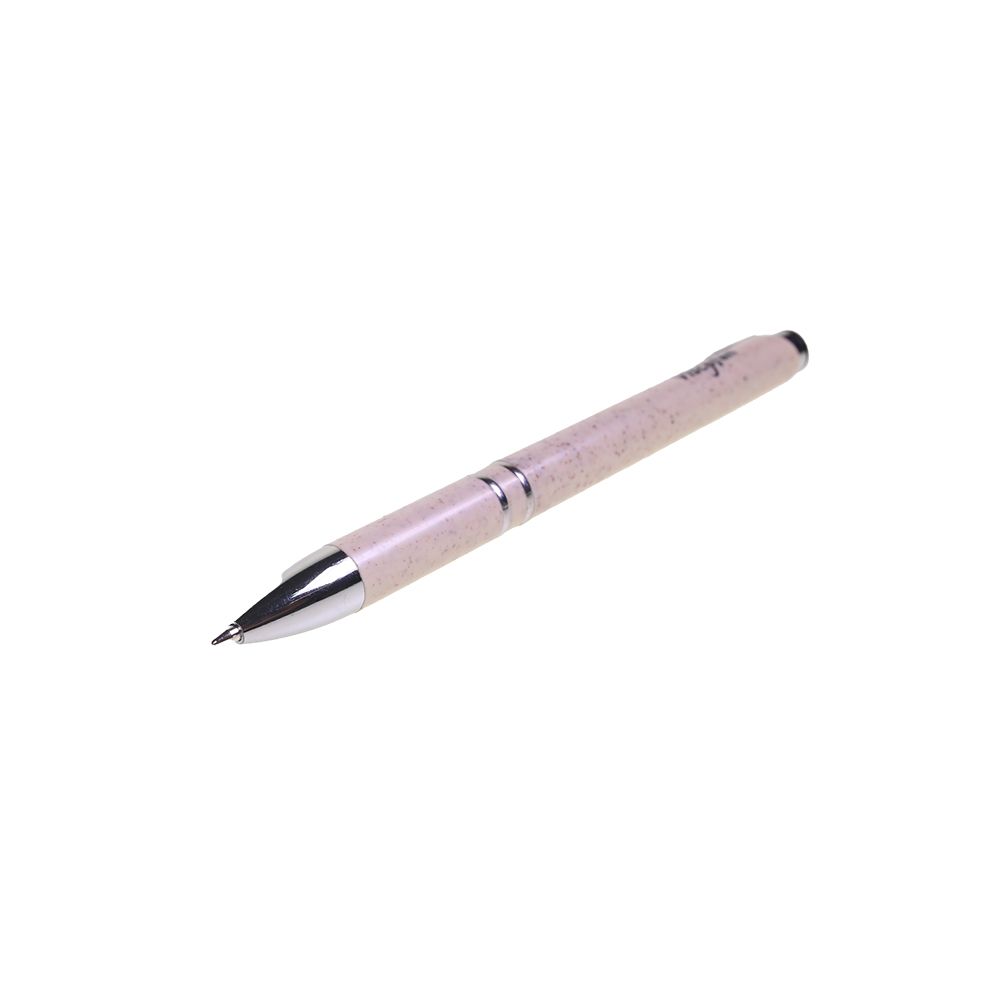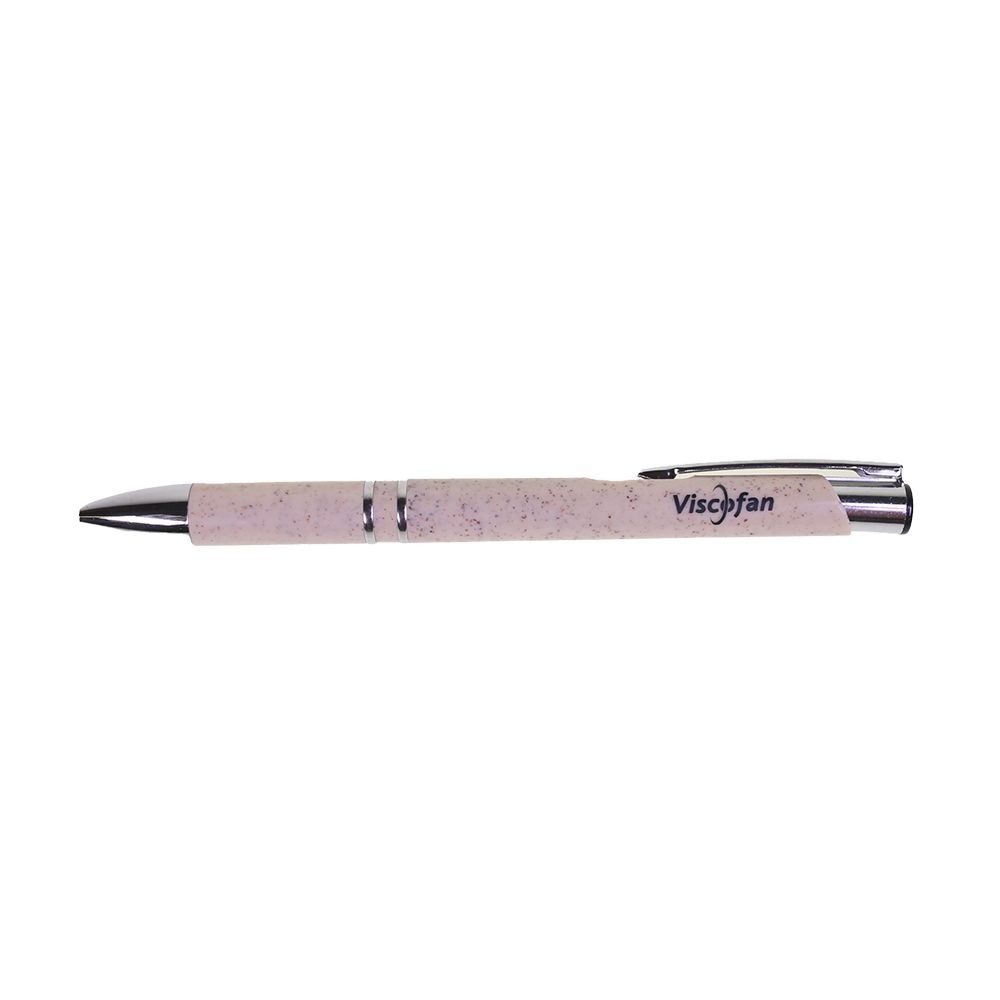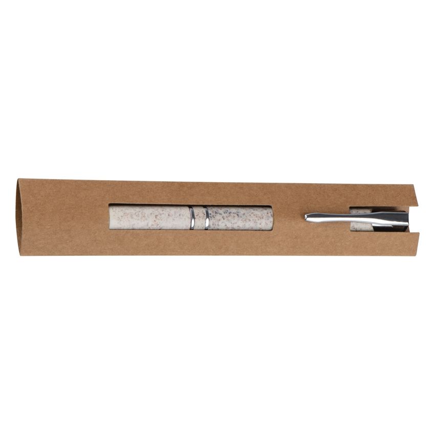 Wheat straw ballpen Ballpen with natural straw coating, silver applications, and blue writing refill. Your logo will be printed to the right of the clip.
